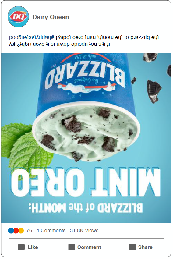 Post Copy: If it’s not upside down is it even right? Try the Blizzard of the month, Mint Oreo today! #HappyTastesGood